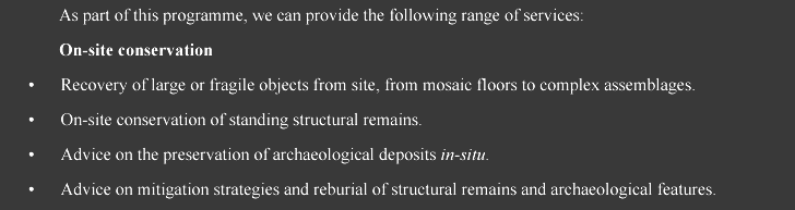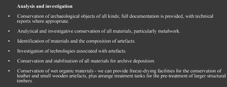 Conservation ensures the long-term survival of excavated material by active stabilisation of vulnerable material and the safe storage of the finds archive as a whole.