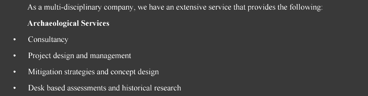 All material on this website, including images, text and graphics, is copyright © 2008 Archaeology and Heritage Management Consultancy unless otherwise stated. The material on this site should not be used, copied, stored or transmitted without the prior written consent of Archaeology and Heritage Management Consultancy in accordance with the Copyright, Designs and Patents Act 1988. |
